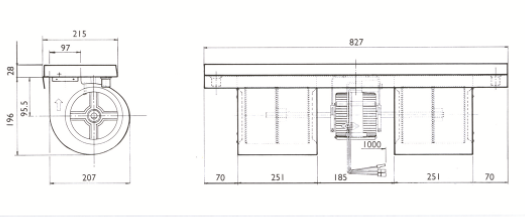 Complet avec moteur à 3, 4 ou 6 vitesses et un ventilateur centrifuge pour des portées allant jusqu'à 1100 m3/h